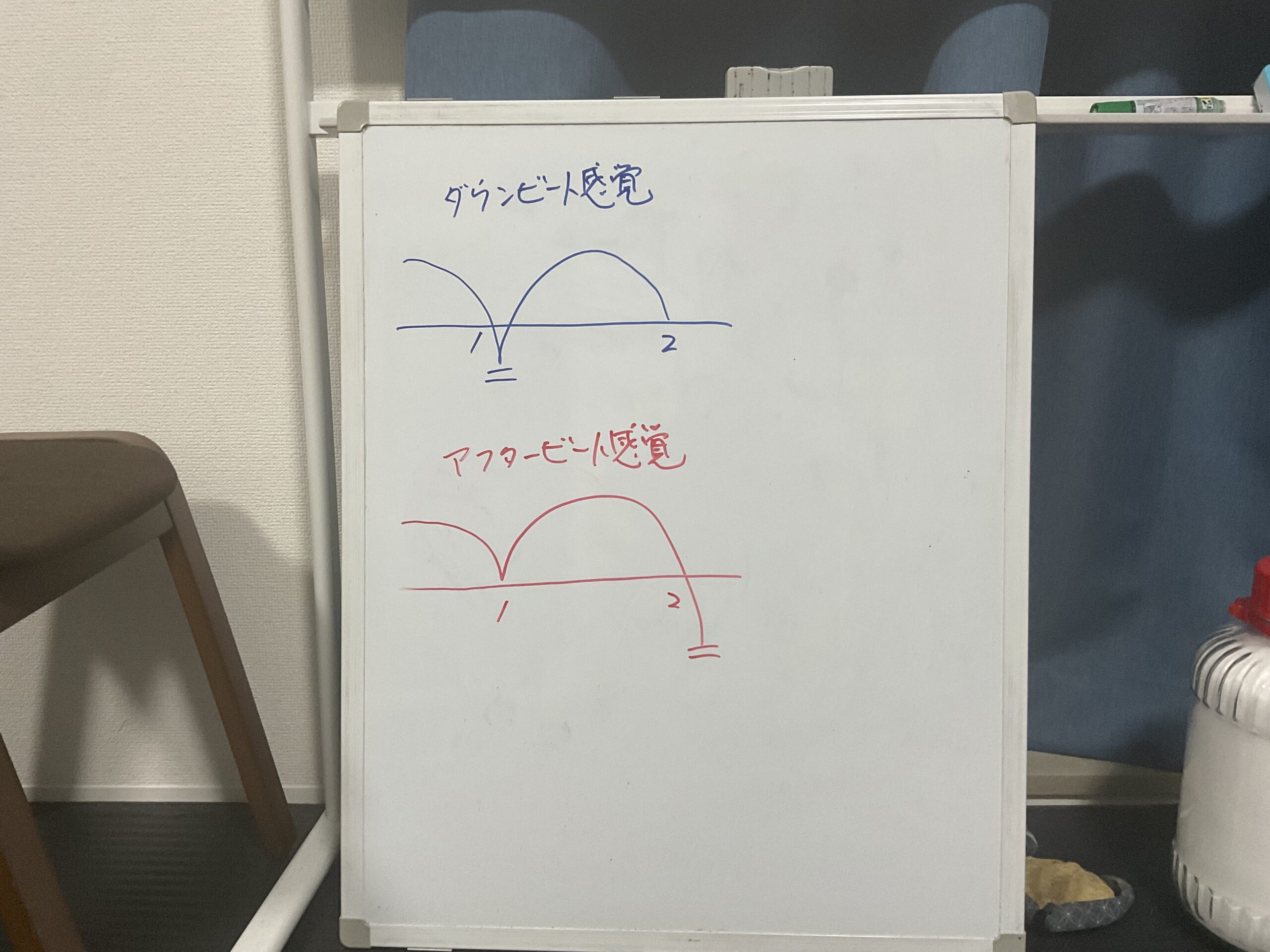 実際にはビート感覚を持たない状態もありますがそれはかなりレアなケース(特定の主導操作モード:主導操作モード理論)なので一般的にはダウンビート感覚とアフタービート感覚のどちらかになります。